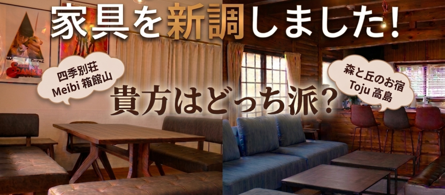別荘内の家具を新しく入れ替え、リニューアルいたしました!!